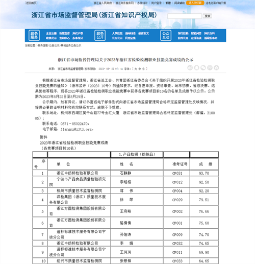 喜訊丨中紡標(biāo)浙江公司在2023年浙江省檢驗(yàn)檢測職業(yè)技能競賽中喜獲佳績