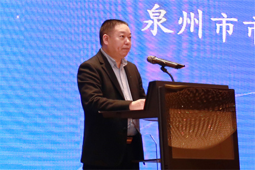 泉州市市場(chǎng)監(jiān)督管理局調(diào)研員劉華致辭。劉華介紹了泉州的紡織服裝品牌,注重品牌引領(lǐng)產(chǎn)業(yè)升級(jí),希望紡織領(lǐng)域?qū)<抑С秩菁徔椥袠I(yè)發(fā)展,助力泉州紡織業(yè)高端化、智能化、綠色化、融合化發(fā)展。